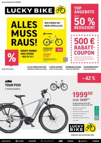 E IN FA C H DA S R IC H TIG E R AD DAS PERFEKTE DRUM UND DRAN NUMOVE 140 KINDERRAD 14 ZOLL – 20 % ADVENTURE 26 JUGENDRAD 26 ZOLL – 25 % SANDEE ATB MTB-HARDTAIL – 22 % h c i l n h ä . b b A 279991 statt 349002 + superleicht, nur ca. 5 kg + kindgerechte Bremshebel & schmaler Lenker + sicherer Antrieb mit geschlossenem Kettenschutz + auch in blue & flashwhite erhältlich 299991 statt 399992 Finanzierungsrate ab mtl. 9003 + voll ausgestattetes und sportliches 26 Zoll MTB + Shimano 21-G Kettenschaltung + helle LED-Beleuchtung mit Shimano Nabendynamo + auch als Mädchenrad verfügbar 429991 statt 549992 Finanzierungsrate ab mtl. 13003 + Mountainbike für Trail & Stadt mit alltagstauglicher Straßenausstattung + Shimano 14-G Kettenschaltung + Scheibenbremsen von Tektro + SR Suntour Federgabel + inkl. Licht, Schutzblechen & Ständer Art.-Nr.: 93802 Art.-Nr.: 96519 Art.-Nr.: 90278 SMARTPHONE- HALTER DE LUXE HANDYHALTERUNG – 35 % xxx LS Q LICHTSET xxx BELECHTUNG XXX – 50 % – 50 % xxx FS480 COPS X-PRESS xxx FALTSCHLOSS XXX 12991 statt 19992 + Smartphone-Halterung für Lenker & Vor- bau für Navigation, Tracking & Telefonie + stufenlos verstellbar von 55–95 mm + bis 6,5 zoll Displaygröße + robuste Aluminiumkonstruktion + kein Verkratzen durch Gummipads xxxxx 14991 statt 29992 statt xxxxx2 Rate ab mtl. xxxx3 + xxx + LED-Lichtset mit integriertem Akku + xxx + StVZO zugelassen + xxx + Leuchtstufen: 30 Lux, 15 Lux + xxx + bis zu 4 Stunden Leuchtdauer + xxx + USB-C Anschluss + xxx + Universalhalterung xxxxx 5399 statt 107992 statt xxxxx2 Rate ab mtl. xxxx3 + xxx + kompaktes Fahrradschloss + xxx + X-PRESS Halter inklusive + xxx + IN-X Zylinder mit Wendeschlüssel + xxx + Korrosionsschutz + xxx + gehärteter Stahl + xxx + Gewicht: 1200 g (100 cm) Art.-Nr.: 84528 Art.-Nr.: xxx Art.-Nr.: 92842 Art.-Nr.: xxx Art.-Nr.: 93765 25 € 7 RABATT- COUPON 7gültig bis 01.11.25 ab einem Einkaufswert von 75 €; nur für lagernde Ware und nur in unserer Filiale Wiesbaden einlösbar; gilt nicht für bereits reduzierte Ware sowie für die Angebote dieser Werbung; nicht mit anderen Coupons/Dienstleistungen/ Leasing kombinierbar; keine Barauszahlung COUPON 20 % 8 AUF UNSER HELM- SORTIMENT! 8gültig bis 01.11.25, nur für lagernde Ware und nur in unserer Filiale Wiesbaden einlösbar; gilt nicht für bereits reduzierte Ware; nicht mit anderen Coupons/Dienstleistungen/Leasing kombinierbar 1Barpreis (Leasingkonditionen weichen ab); gültig bis 01.11.25, nur für lagernde Ware und nur in unserer Filiale Wiesbaden, solange der Vorrat reicht; nicht kombinierbar mit anderen Rabatten oder Coupons; alle Preise in Euro, inkl. deutscher Mehrwertsteuer; Irrtümer vorbehalten 2UVP des Herstellers 3Finanzierung über den Kreditrahmen mit Mastercard®: Bonitätsabhängiger Kreditrahmen bis 10.000 €, Laufzeit unbefristet. Veränderter Sollzinssatz (jährlich) 17,43 % (eff. Jahreszins 18,90 %). Monatliche Rate mind. 3% des höchsten Sollsaldos (aufgerundet auf 100 €), mind. 9 €. Angaben als repräsentatives Beispiel gemäß §17 Abs.4PAngV. Vermittlung erfolgt ausschließlich für den Kreditgeber BNP Paribas S.A. Niederlassung Deutschland, Rüdesheimer Straße 1, 80686 München 4Unverbindliche, beispielhafte Darstellung einer monatlichen Leasingrate eines Arbeitnehmers auf Basis einer durchschnittlichen Leasingrate nach Gehaltsumwandlung auf den Leasingpreis, ledig, Steuerklasse 1, keine Kinder, inkl. Pedelec Versicherung, Arbeitnehmer trägt Versicherungsrate, keine optionalen Servicepakete, Hessen, inkl. RV/KiSt/GKV/KV 1,7 % Zusatzbeitrag, keine Arbeitgeberbeteiligung, Arbeitgeber ist vorsteuerabzugsberechtigt. Die individuelle Leasingrate und tatsächliche Nettobelastung sind abhängig von der Leasinggesellschaft, der Vertragsgestaltung, Beteiligung des Arbeitgebers und individueller Steuersituation des Arbeitnehmers. Diese kann über den Vorteilsrechner der jeweiligen Leasinggesellschaft ermittelt werden. Eigene Berechnungen auf Basis der Portale Jobrad, Bikeleasing, Businessbike. Stand Lohnsteuerjahr 2024. Alle Angaben ohne Gewähr. 5Lucky Bike.de GmbH, Sunderweg 1, 33649 Bielefeld + RIESENAUSWAHL + TOP MARKEN + E-BIKE-CENTER + FAHRRADLEASING + FACHWERKSTATT + TOP BERATUNG WIR ZIEHEN UM – NÄHE ÄPPELALLEE ALLES MUSS RAUS! KOMM VORBEI UND SPARE BIS ZU 50 % E I N FAC H DA S R I C H T I G E R A D – W W W. LU C K Y- B I K E . D E WIESBADEN DEINE NR. 1 IN WIESBADEN Mainzer Straße 112 65189 Wiesbaden5 P Kundenparkplatz MO – FR 10.00 – 19.00 SA 10.00 – 18.00 xxxxxxxxxxxxLeasingrate n. Steuern ab mtl. 49004xxxxxxxxxxxxLeasingrate n. Steuern ab mtl. 42004xxx xxx xxx xxxLeasingrate n. Steuern ab mtl. 44004Finanzierungsrate ab mtl. 11003Leasingrate n. St. ab mtl. 21074Leasingrate n. St. ab mtl. 21074Leasingrate n. Steuern ab mtl. 71004xxxxxxxxxxxxLeasingrate n. Steuern ab mtl. 49004Finanzierungsrate ab mtl. xx003xxxxxxxxxxxxLeasingrate n. Steuern ab mtl. 49004xxxxxxxxxxxx